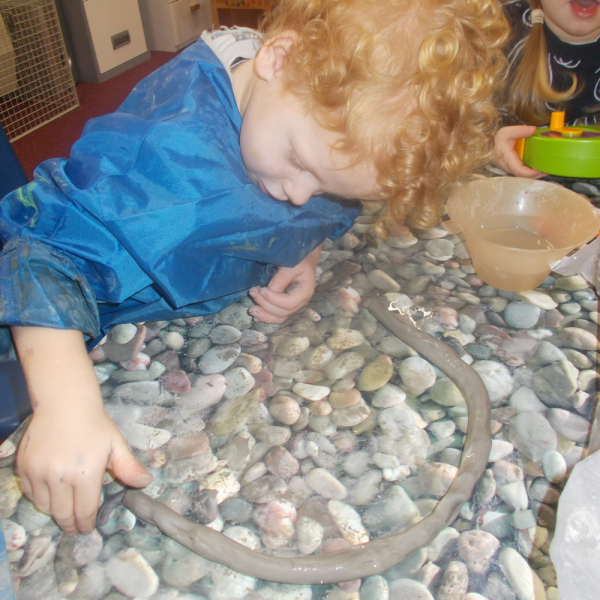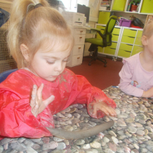On our tuff tray we enjoyed pipette painting. We filled our paint points with different coloured water and challenged the children to transfer the liquid using only the pipettes. Once the pots were empty, the children then set about transferring the liquid off the tray and back into the pots again.