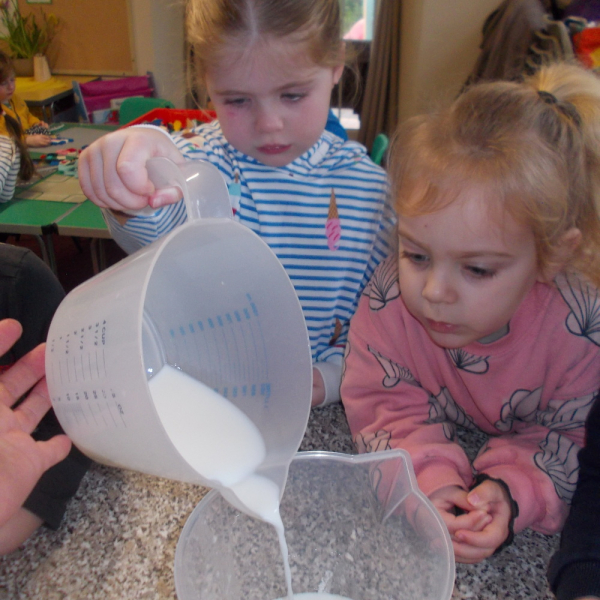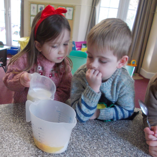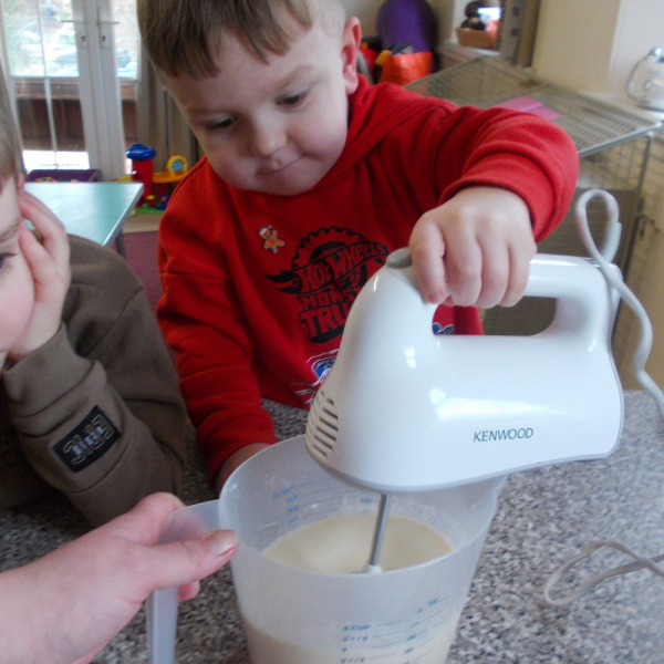 For the final week of this half term we celebrated Pancake Day! Whilst we know it was a week early we didn’t want to miss out on the occasion. The children measured out the ingredients, mixed them together with the electric whisk and then transferred the mixture into the frying pan using the ladle. We enjoyed the pancakes at snack times with fruit, honey and lemon juice.